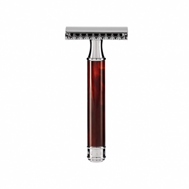- т-образная бритва R 103 с рукояткой из смолы черепахового цвета и головой с открытым срезом;