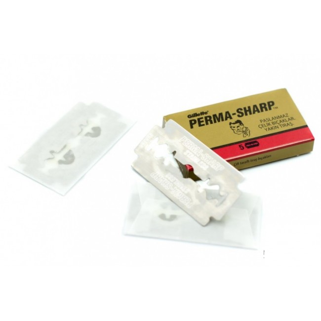 Лезвия для безопасной бритвы Perma-Sharp обеспечивают комфортное бритье и прощают незначительные ошибки. Эти лезвия из нержавеющей стали чрезвычайно острые и прочные. Они обработаны PTFE (покрытие Teflon) для обеспечивания чистого бритья и долговечности. Не вытирайте эти лезвия после использования, так как это приведет к удалению покрытия из PTFE. Одни из самых популярных лезвий у турецких барберов.