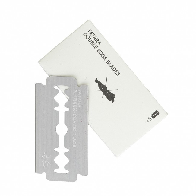 Упаковка - 5 сменных лезвий Tatara Double Edge Safety Razor Blades, индивидуально упакованных в вощеную бумагу, в картонной упаковке.