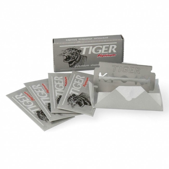 Лезвия для безопасной бритвы Tiger Platinum Razor Blades изготовлены из высококачественной шведской нержавеющей стали с высоким содержанием углерода.