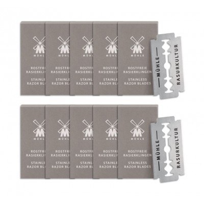 Состав набора: 100 лезвий MUEHLE (10 пачек по 10 лезвий в каждой)