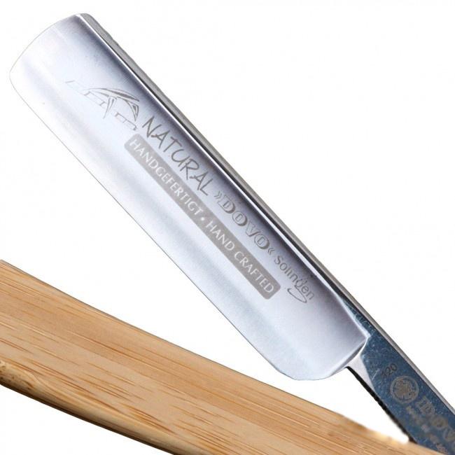 Такую модель опасной бритвы фирмы DOVO считают иеальной любители экологически чистых товаров. Ручка бритвы выполнена из бамбукового дерева - очень прочного материала, хорошо устойчивого к влаге. То есть ручка не разбухнет при частом намокании и не сломается при случайных падениях. Совет для того, чтобы бритва была для Вас наслаждением дольше: хорошо ее просушивайте, до той степени, чтоб не оставалось никакой нежелательной влаги. Касательно лезвия скажем, то ширина составляет 5/8 дюймов, вогнутость равна 1/2. Лезвие этой модели, как и у всех бритв этой фирмы, изготовлено из качественной немецкой углеродистой стали. Бритва сделана вручную, что, несомненно, обещает продолжительный срок годности.