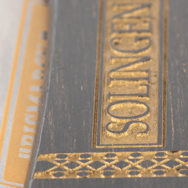 Клинок с полной вогнутостью 1/1 изготовлен из высококачественной углеродистой стали. Шейка, хвостик и обушок режущего полотна покрыты золотым напылением; также 24-каратное золото использовано для нанесения названия модели на лезвие.