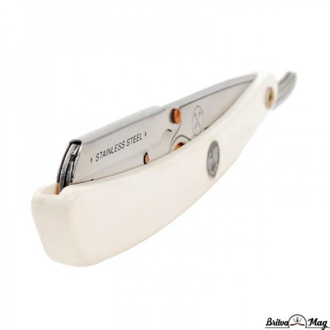 Тип бритвы - шаветта. Увесистая модель, хорошо лежит в ладони, для более качественного процесса бритья. Бритва изготовлена из чистого нержавеющего металла с отличным балансом, щечки рукоятки из качественного пластика. Фиксатор лопасти лезвия сделает более удобный процесс бритья, а скругление на конце лезвия обезопасит от порезов кожи.