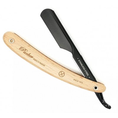 Тип бритвы - шаветта. Является отличной альтернативой опасной бритве, лишь с тем отличием, что здесь используются стандартные безопасные сменные лезвия. Предназначена для использования в парикмахерских, а так же для личного пользования. Держатель лезвия из нержавеющей стали, чёрного цвета, с надежным фиксатором, позволяет легко производить замену лезвия. Щёчки рукоятки бритвы выполнены из натурального дерева, сосны. Идеальное качество по доступной цене.