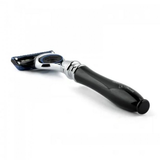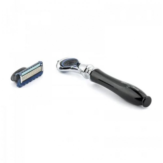 Утонченный станок для безопасного бритья. Система лезвий Gillette Fusion. Станок из коллекции Chatsworth с ручкой из акрила, что имитирует черное дерево.