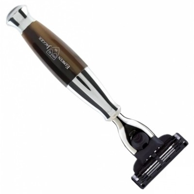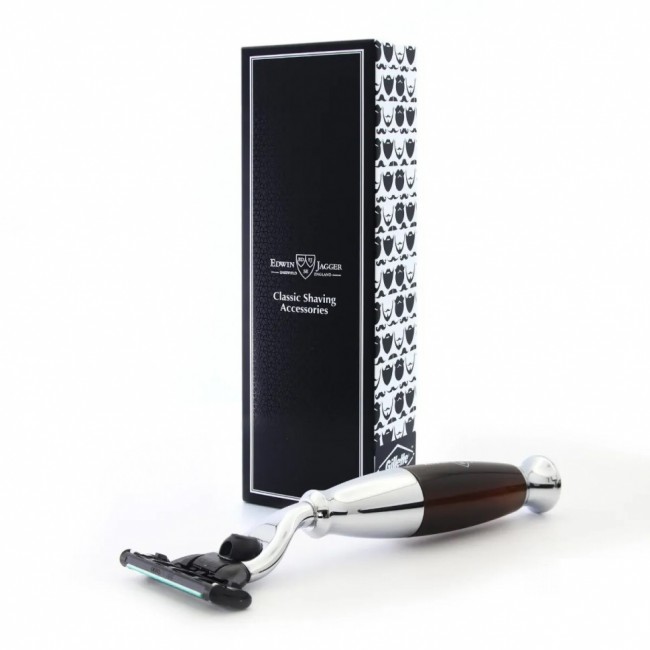 Станок для бритья Edwin Jagger R362CR - это классическая бритва, совместимая с картриджами системы Gillette® Mach3 (1 картридж в комплекте). Gillette® Mach3 многими считается самой удачной системой этого всемирно известного производителя. Точно рассчитанный угол наклона трех тончайших лезвий обеспечивает гладкое бритье в любом направлении. Защитные микрогребни нежно разглаживают кожу и направляют волоски к лезвиям. Усовершенствованная смазывающая полоска не только облегчает скольжение лезвий, но и сигнализирует изменением цвета о необходимости сменить кассету. Плавающая головка бритвы позволяет ей повторять все контуры лица. Сама ручка выполнена из полиэстера, имитирующего чёрное дерево, со стильным никелированными деталями. Имеет идеальный вес и баланс, производятся вручную из качественных материалов, обеспечивает хороший хват и комфортное и чистое бритье. Такой бритвенный станок со стильным внешним видом будет хорошим приобретением и отличным подарком мужчине.