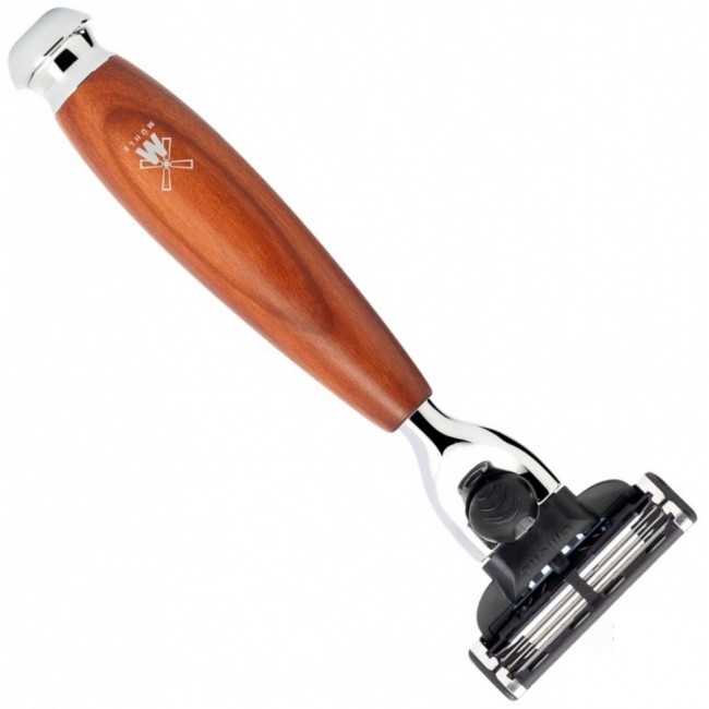 Станок для бритья Muehle R 331 F из коллекции VIVO, совместим с системой с системой Gillette® Mach3®. Ручка с хромированной металлической базой сделана из сливового дерева.