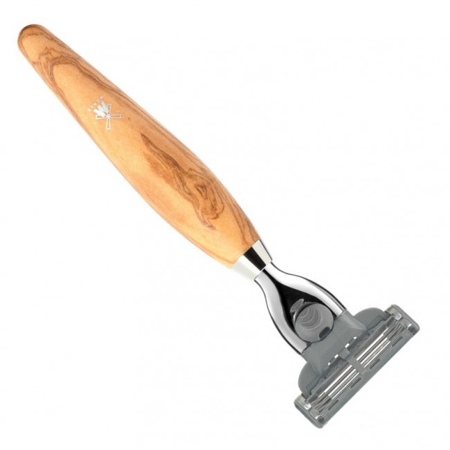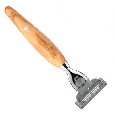 Эта бритва совмещает в себе рукоять из редкого материала – оливкового дерева и обыкновенные картриджи-лезвия Gillette. Олива привлекательна своим неповторимым извилистым узором и особым средиземноморским колоритом. Для обретения насыщенного медового оттенка она обрабатывается маслом.