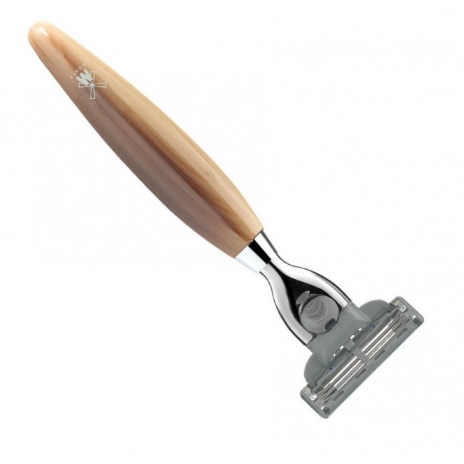 Стильный и невероятно непривычный станок от немцев Muehle радует своим качеством, внешним видом и практичностью. Эта бритва совмещает в себе рукоять из синтетической смолы и обыкновенные картриджи-лезвия Gillette.