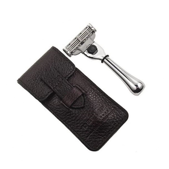 Станок для бритья Parker Travel Razor MACH 3 отлично подходит для путешествий или ежедневного использования. Бритва достаточно компактная по размеру и не займёт много места в багаже. Но при этом она достаточно тяжёлая для того, чтобы обеспечить вам гладкое и комфортное бритье. Ручка с хромированным напылением, выполнена из латуни. Чехол, который идёт в комплекте к этому станку, темно-коричневого цвета, из натуральной кожи.