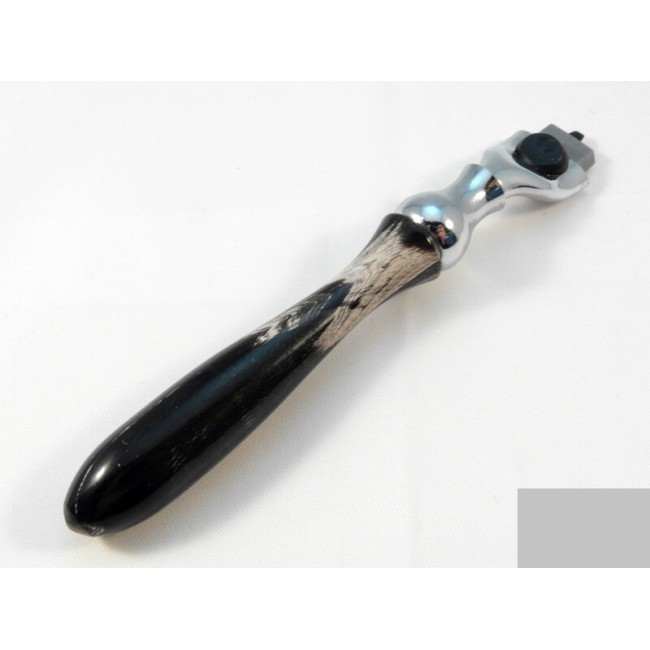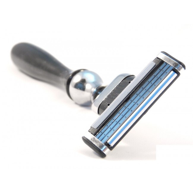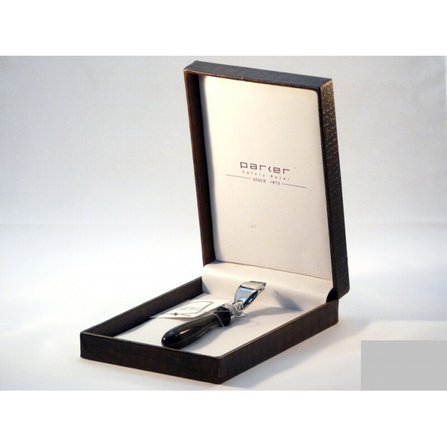Изысканный бритвенный станок Parker Model No. 51M. Станок великолепно сочетает элегантную рукоять и современную бритвенную головку системы Mach 3. Для изготовления компонентов станка производитель использовал только качественные материалы. З лезвия и увлажняющая полоса над ними обеспечивают тщательное и безопасное бритьё. Форма ручки идеально сбалансирована и комфортно помещается в руке.
