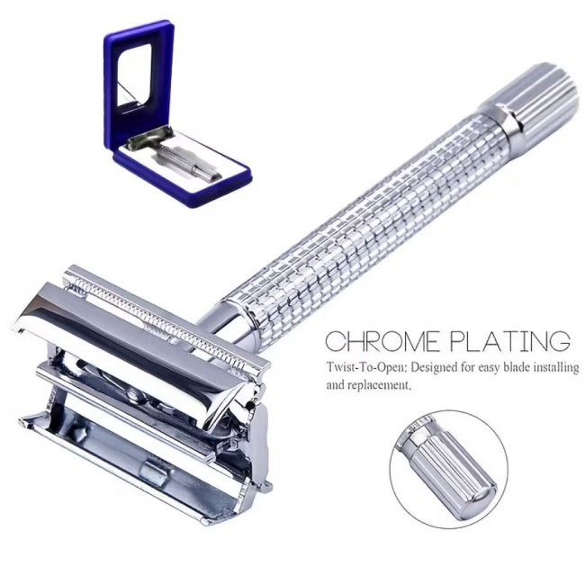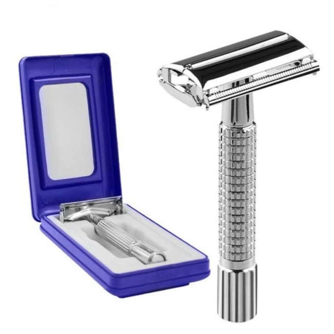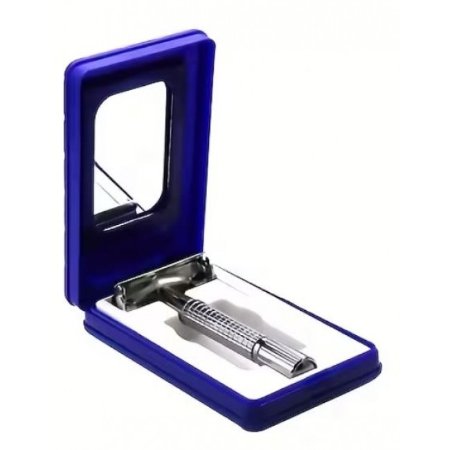 Хромированное покрытие подчёркивает аккуратный и элегантный дизайн станка, а пластиковый футляр с зеркалом делает его удобным вариантом для поездок, командировок или хранения дома.