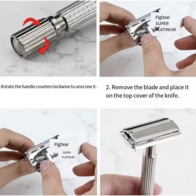Эргономичная рукоятка с насечками обеспечивает надёжный хват и не скользит в руке во время бритья. Закрытый гребень делает процесс более безопасным и снижает риск порезов, что особенно важно при ежедневном использовании. Благодаря механизму «бабочка» замена лезвия занимает всего несколько секунд — достаточно повернуть ручку, чтобы открыть створки головки.