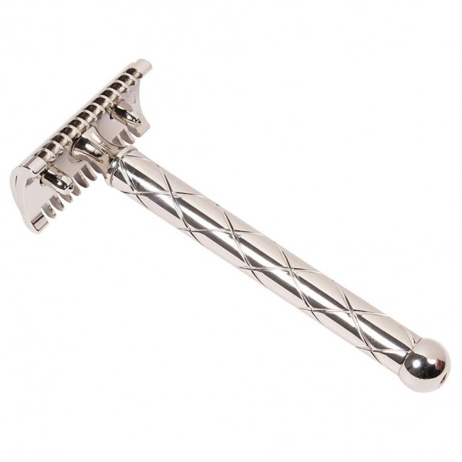 Данная модель станка Fatip Retro Nickel относительно недавно представлена на рынке. Вдохновением для дизайна послужил классический внешний вид бритв начала 20-го века. Его длинная и тонкая ручка, с элегантной гравировкой и шаровым наконечником обеспечивает очень удобный захват. Fatip Retro Chrome состоит из трех частей, хорошо сбалансирована и проста в использовании. Бритва сделана из латуни, никелированная поверхность отполирована. Знаменитый агрессивный открытый гребень делает Fatip Retro Nickel отличным выбором для людей, имеющих сложные, фигурные бороды или предпочитающих бриться раз в несколько дней.
