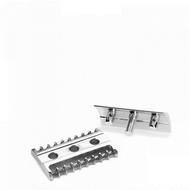 Бритва Muehle Traditional c открытым срезом – это самый агрессивный станок среди т-шек. Его даже можно назвать ближайшим аналогом опасный бритвы – настолько он зол в работе. Он не прощает спешки и отсутствие техники, им нельзя побриться на скорую руку, а бы как и тяп-ляп. А все потому, что благодаря лезвию, которое выходит за пределы гарды, бритвенное полотно ложится прямо на кожу и режет волоски щетины максимально близко к корню. И бреет очень чисто!