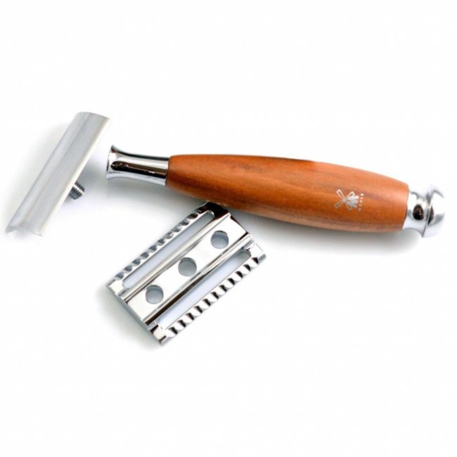 Великолепная безопасная бритва R 331 SR от Muehle (на немецком Mühle) из серии Vivo никого не оставит равнодушным. Рукоять у этого станка выполнена из натурального материала – сливы, и хотя это дерево растет едва ли не в каждом саду, его древесина считается ценной породой.
