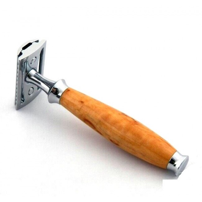 Премиальная т-образная бритва Muehle R 55 SR из коллекции Purist – один из самых дорогих станков в ассортименте нашего магазина. Его цена складывается из редкой рукоятки необычной фактуры, выполненной из капа карельской березы.