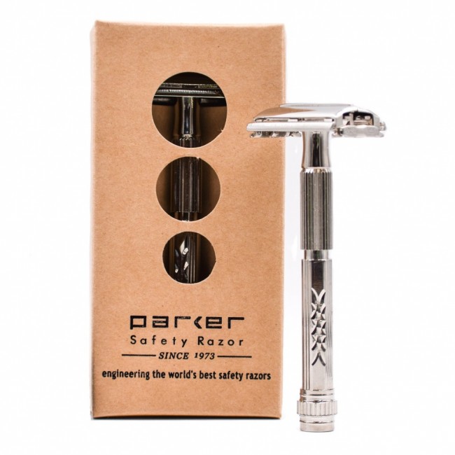 Бритва Parker 60R имеет уникальный дизайн с гравировкой, который многие называют Crystal Cut. Он обеспечивает надёжный захват даже мокрыми руками. Материал ручки - латунь с хромированной отделкой для обеспечения многих лет использования и долговечности.