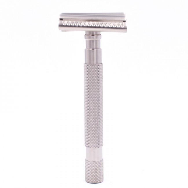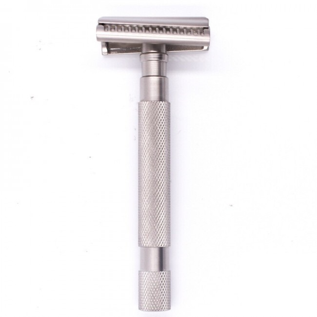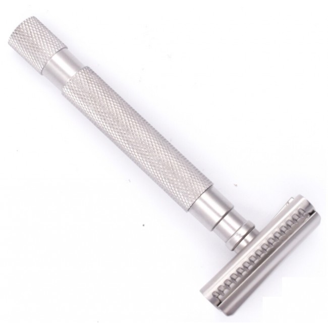 Хромированная латунная рукоятка с графитовым эффектом обеспечивает достаточное сцепление, поэтому вы можете быть уверены в стабильном и эффективном бритье.