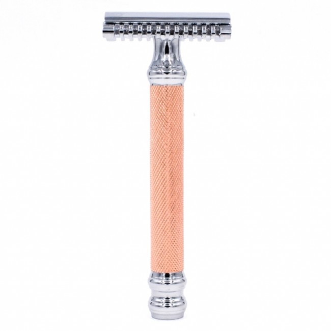 Станок для бритья Т-образный Parker Model No. 63C - особенная модель от известного производителя. Голова этой бритвы была спроектирована таким образом, чтобы обеспечить исключительно гладкое бритье, при этом не будучи чрезмерно агрессивной. Эта модель имеет красивое металлическое покрытие из розового золота для стильного внешнего вида и рифлёные насечки для удобного хвата влажными руками. Мы рекомендуем эту бритву как для новичков, так и для опытных поклонников классического влажного бритья. Открытый дизайн гребня растягивает кожу, обеспечивая очень чистое бритье. Пользуясь этим станком в домашних условиях, вы получите такое же качественное бритьё, как в барбершопе!