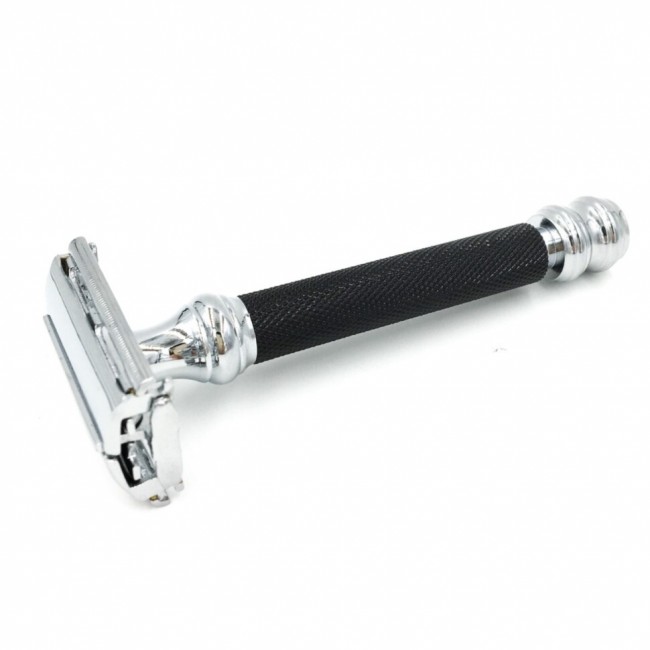 За последние несколько лет Parker Safety Razor довольно сильно активизировался - это имя вы увидите в списках всех лучших бритв. Недавно выпущенная им модель Parker Twist Model No. 76R - не исключение. Её вес - 105 гр., это считается супер тяжелый вес для Т-образных бритв. Такая бритва очень стабильна и не требует какого-либо дополнительного давления для комфортного гладкого бритья. Стильная чёрная ручка обеспечивает невероятное сцепление, а благодаря её длине, более 10 см., станок легко удержать. Материал ручки - латунь с хромированной отделкой для обеспечения многих лет использования и долговечности. Тип механизма замены лезвия - Butterfly Twist (бабочка), он позволяет безопасно и быстро поменять лезвия. Parker известен таким решением в Т-образных бритвах. Это действительно лёгкая замена лезвия на одном дыхании – просто поверните пару раз ручку в нижней части станка, откроется механизм головки, старое лезвие автоматически поднимется из пазов, что даст возможность заменить его на новое. Отличное соотношение цены и качества!