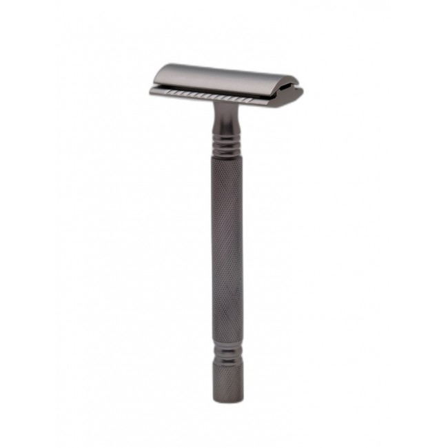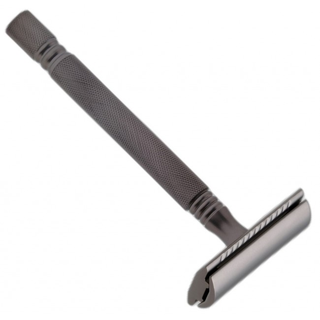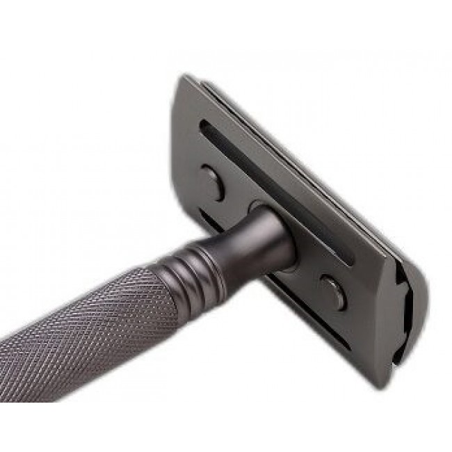 Станок для бритья Т-образный Pearl SS-01 Graphite Black Closed Comb (с закрытым гребнем) – это классическая безопасная бритва из трёх частей, весом 80 грамм и агрессивностью ≈ 4.0 (что немного превышает агрессивность бритвы Muehle R89). Данная бритва идеально подойдет для начинающих пользователей, которые, как правило, в первое время прибегают к излишнему давлению бритвой и, соответственно лезвием, на кожу лица, что приводит к травмированию (порезам) кожи. Бритвенный станок и его удлинённая ручка позволяет использовать бритву с наименьшим давлением на кожу, лишь используя собственный вес станка, что вынуждает начинающего пользователя непринужденно применять бритву с наилучшей техникой бритья, избегая порезов и раздражения кожи. Голова станка изготовлена из цинкового сплава, ручка станка - из латуни, покрытие - Graphite Black.