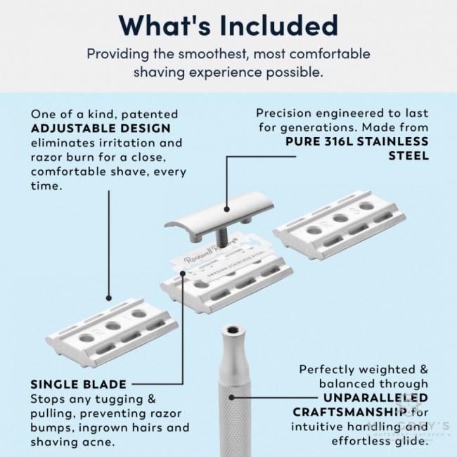 - 1 упаковка фирменных бритвенных лезвий Rockwell (5 лезвий);