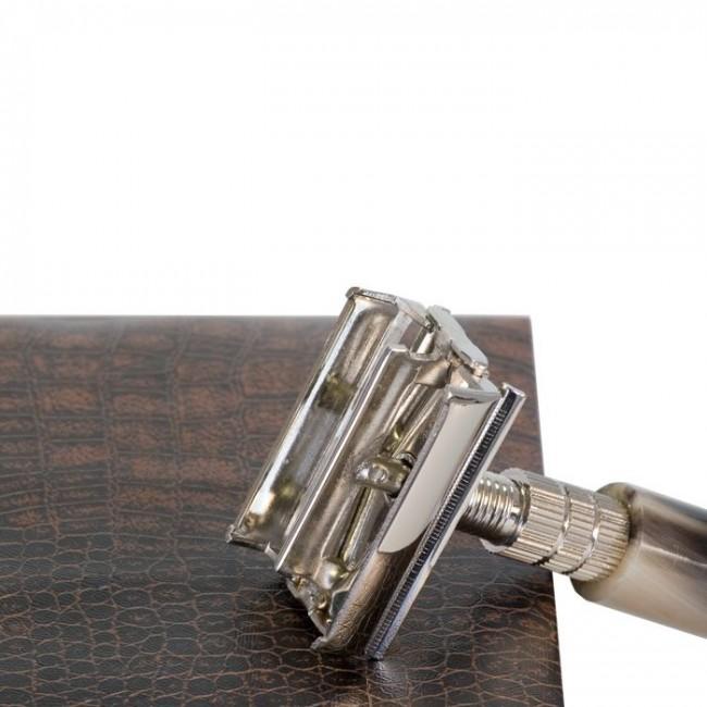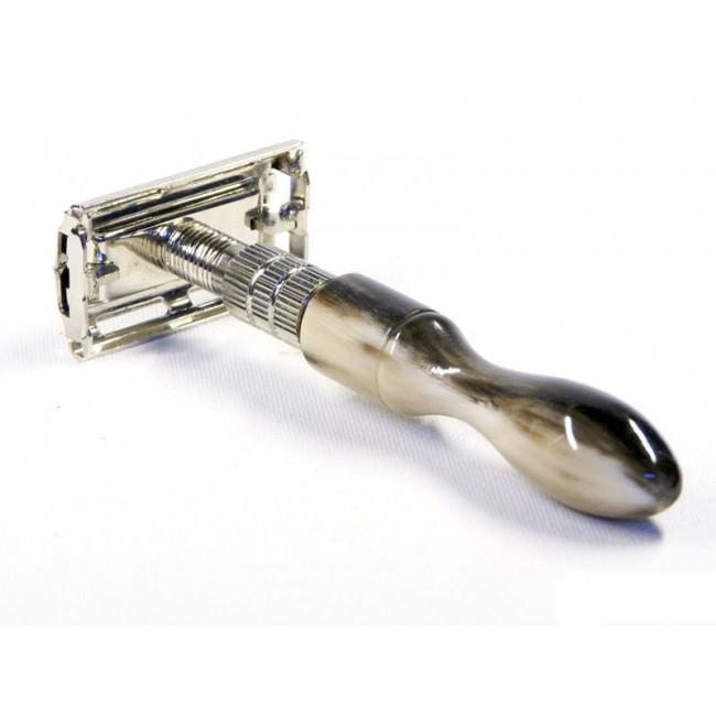 Parker 16R - одна из лучших моделей этого бренда. А все благодаря многочисленным плюсам, о которых Вы сейчас узнаете. Во-первых, это гребень закрытого типа с замком по системе "бабочка". Во-вторых, хромированная головка украшена декоративной спиралью с тремя кольцами-стопорами, что делает эту братву немножечко особенней. В-третьих, луковичного типа рукоять, сделанная из рога, темного цвета и с превосходной гладкостью. В-четвертых, это, несомненно, высокое качество и прекрасный внешний вид. Так что можете не сомневаться, эта бритва принесет Вам исключительное удовольствие от процесса бритья.