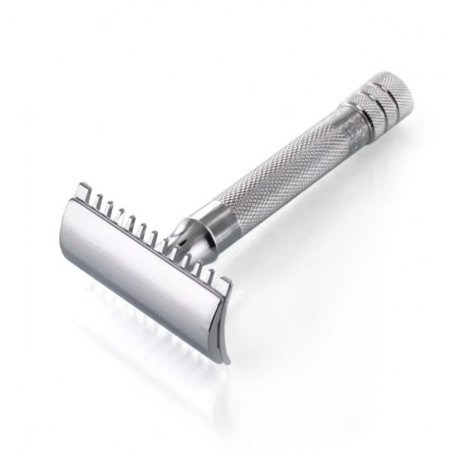 Бритва MERKUR 15C представляет собой безопасную бритву из трех частей, состоящую из верхней пластины, гребня и ручки. Зубцы гребня направляют волосы к лезвию бритвы, обеспечивая очень тщательное влажное бритье. Еще одним преимуществом открытого гребня является то, что ее трудно засорить сбритыми волосами. Выберите эту модель, если вы хотите удалить или укоротить более жесткие и длинные волосы на лице и теле.