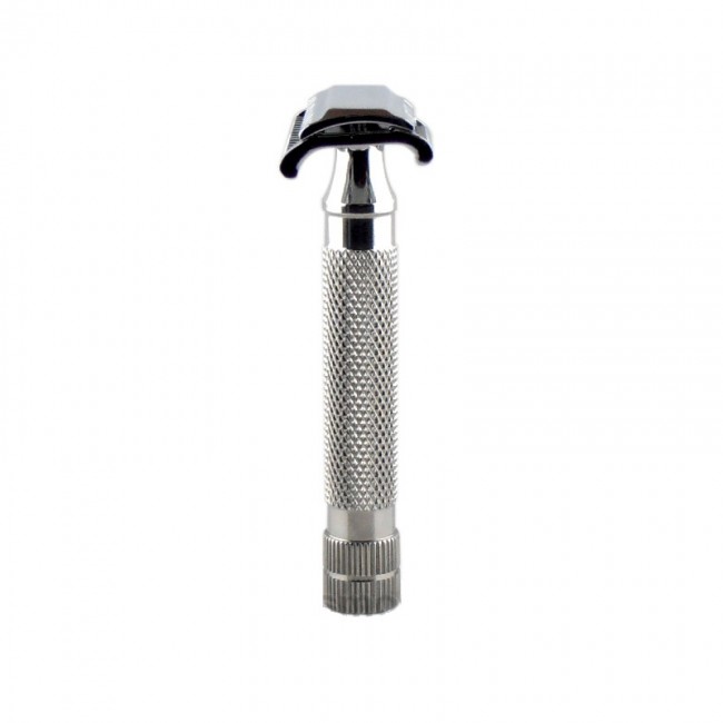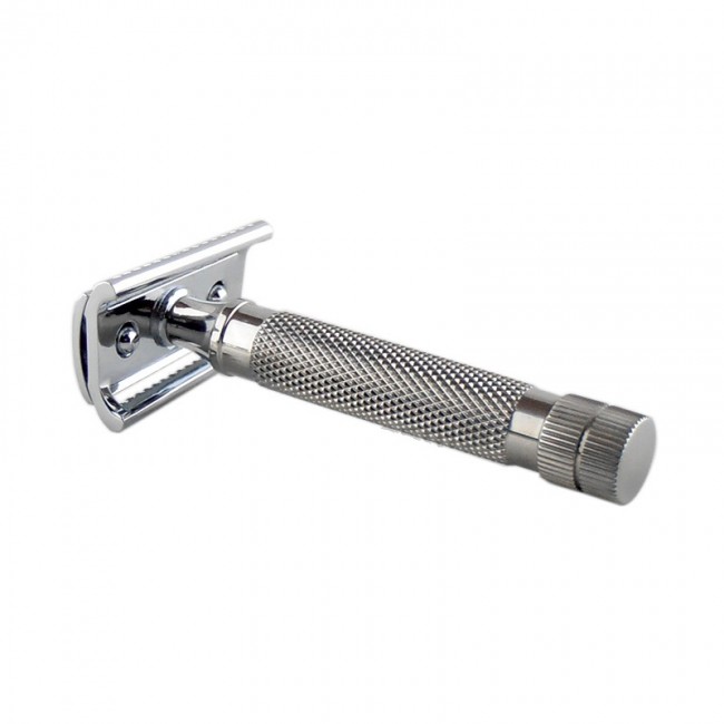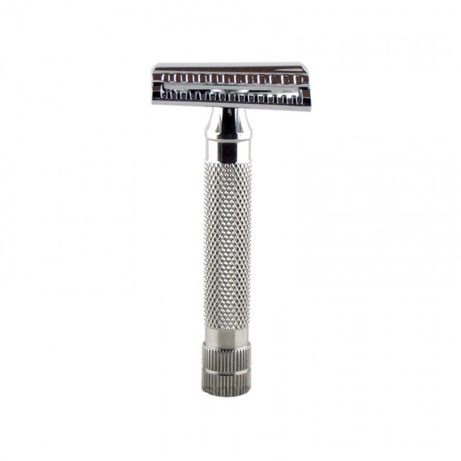 Бритва использует стандартные двусторонние лезвия (DE), которые легко заменить за считанные секунды. Слант-конструкция позволяет быстрее справляться даже с жёсткой щетиной, уменьшая количество проходов по коже.