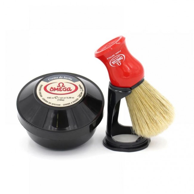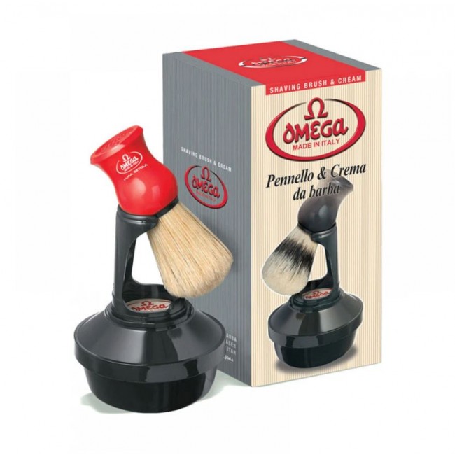 Набор для бритья Omega 46065 является идеальным помощником каждого мужчины, который поможет сделать процесс бритья чрезвычайно легким и комфортным. Набор состоит из помазка, натурального мыла для бритья, а также специальной стойки, которая поможет компактно ставить и хранить помазок. Мыло для бритья сделано из натуральных веществ. Оно помогает в процессе бритья, смягчая щетину и защищая кожу от раздражения. Помазок изготовлены из высококачественного аморфного материала красного цвета, который имеет высокую твердость и устойчивость к царапинам. Щетина помазка из натурального ворса кабана. Весь набор продается в красивой современной коробке, и он прекрасно подходит в качестве подарка.