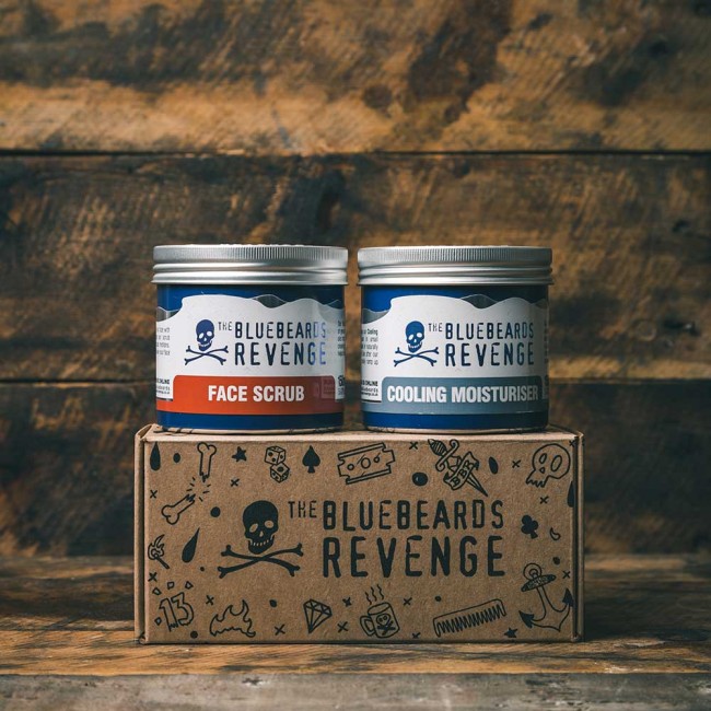 Оживите, освежите и увлажните кожу с помощью нашего стартового набора по уходу за кожей. Этот набор включает в себя наш мощный скраб для лица Bluebeards Revenge, который использует отшелушивающие свойства молотых косточек оливы и имбиря для удаления любых загрязнений с вашей кожи, а также наш быстро впитывающийся охлаждающий увлажняющий крем Bluebeards Revenge, который делает вашу кожу свежей и увлажненной.