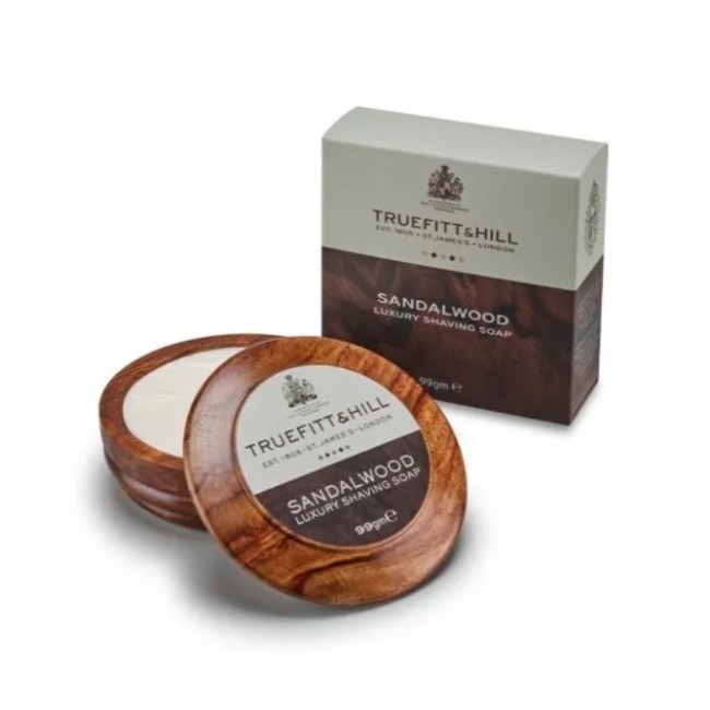 Мыло для бритья Truefitt & Hill Sandalwood Luxury обладает классическим мужским ароматом сандалового дерева.