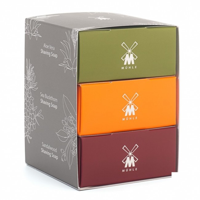 Набор мыла для бритья MUEHLE RS TRIO будет отличным подарком любителям классического влажного бритья. При помощью помазка из мыла и тёплой воды производится богатая нежная душистая пена. Мыло MUEHLE не содержит консервантов, оптимально подготавливает кожу и щетину для комфортного бритья. Набор состоит из трёх различных ароматов: