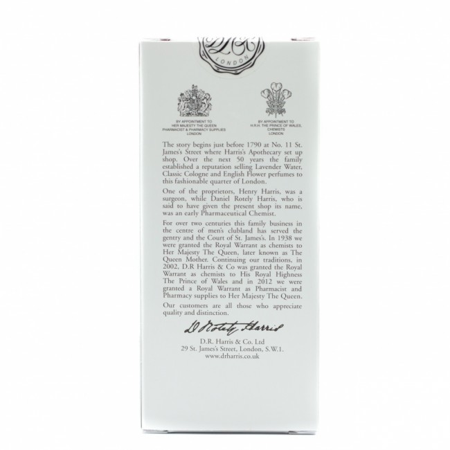 Одно из старейших предприятий Англии, D R Harris ведет свою историю с 1790 года, когда аптекарь Харрис открыл на престижной улице Сент-Джеймс в Лондоне свой первый магазин. На протяжении более двух столетий этот семейный бизнес успешно развивался, приобретая много поклонников. Безупречная репутация и качество продукции подтверждается высоким статусом поставщика Королевского Двора Англии. На сегодняшний день продукция D R Harris всё так же производится традиционными способами по старинным рецептам, отличается классическими ароматами и выверенными ингредиентами.