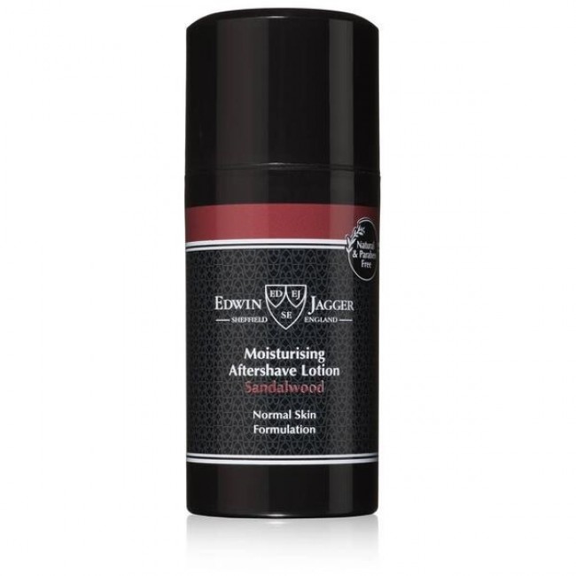 Лосьйон після гоління Edwin Jagger Sandalwood, заспокійливий і зволожуючий, особливо підходить для нормальної і сухої шкіри. Лосьйон спеціально розроблений з використанням унікальної комбінації органічних інгредієнтів і натуральних рослинних екстрактів. До складу входить масло сандалового дерева, яке має протизапальну й антисептичну дію. Має тонкий аромат солодких спецій і теплою деревини. Лосьйон містить 99% натуральних інгредієнтів, флакон зі зручним дозатором.