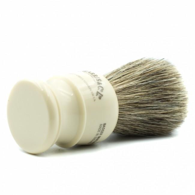Помазок, тисненый логотипом D R Harris, характеризуется невероятно плотной набивкой ворса из барсука, тип - super badger. Рукоятка изготовлена из белой имитационной слоновой кости.