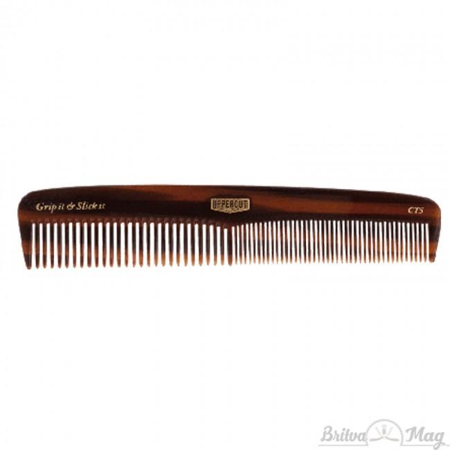 Гребень для волос Uppercut CT5 сочетает в себе стильный внешний вид и старых дух парикмахерских. Иммет удобный карманный размер 203 мм, поэтому вы всегда сможете ее носить с собой. У данного гребня два ряда зубцов, позволяющим без особых усилий придать волосам необходимую форму.