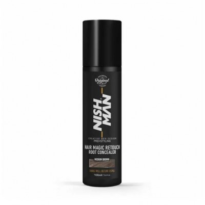 Nishman Magic Retouch — это практичное средство для маскировки седины от турецкого производителя, в ассортименте товаров которого есть несколько видов продукции, созданной специально для “борьбы” с сединой, среди которых и спрей Magic Retouch Root Concealer.