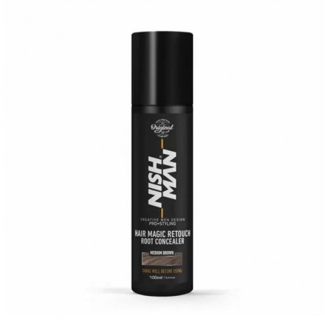 Nishman Magic Retouch Root Concealer — это эффективный спрей с натуральным оттенком волос (средне-коричневый) от турецкого бренда, который обеспечивает надежную маскировку седины.