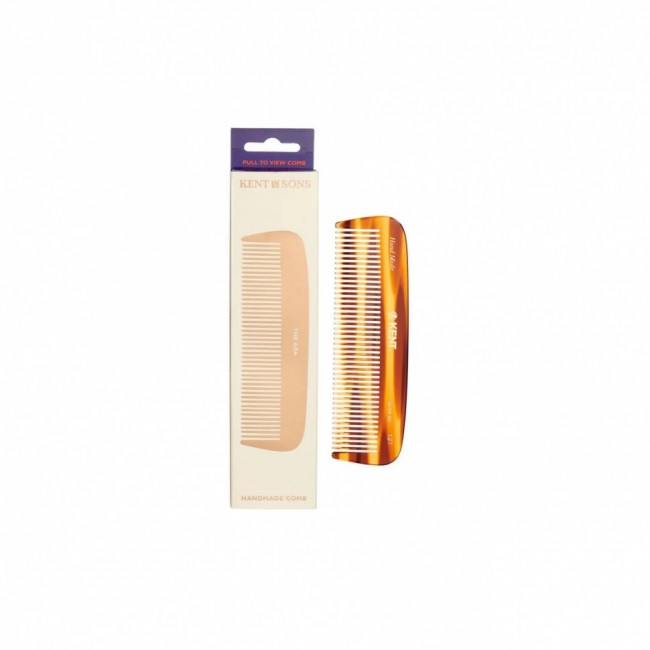 Грубая карманная расчёска ручной работы размером 139 мм изготавливается из крупных листов ацетата целлюлозы. Этот материал тактилен, гибок и прочен. Расчёски Kent имеют закругленные зубцы, которые обеспечивают плавную и удобную работу, без труда скользят по волосам, не царапая и не повреждая волосы или кожу головы. Подходит для расчёсывания влажных или сухих густых волос.