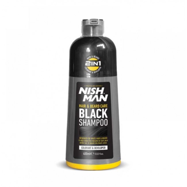 Шампунь-краска для волос и бороды Nishman Hair & Beard Black Shampoo маскирует седые волосы. В этом шампуне совмещены краска и проявитель (два в одном). Поможет окрасить волосы в черный цвет всего за 5 минут. Благодаря специальной формуле волосы становятся черными. А также шампунь Nishman Hair & Beard Black Shampoo питает, защищает и восстанавливает цвет волос. Продукт подходит для всех типов волос.