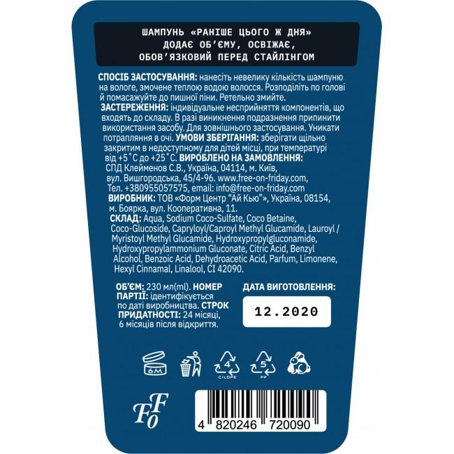 Характеристики Шампунь-кондиционер Free On Friday EARLIER TODAY, 230 мл