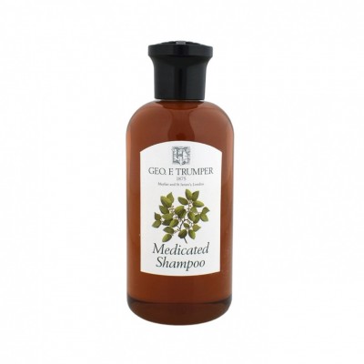 Лечебный шампунь Geo F Trumper Medicated Shampoo содержит масло эвкалипта и можжевеловую смолу. Эвкалиптовое масло веками использовалось в качестве антибактериального, противовоспалительного средства, в то время как можжевеловая смола лечит псориаз кожи головы. В состав также включен экстракт коры бразильского дерева зизифуса жуазейро (ziziphus joazeiro), который хорошо борется с перхотью, а также обладает успокаивающими свойствами. Схожий по стилю с традиционным шампунем с каменноугольной смолой, это высокоэффективный шампунь против перхоти состоит из 100% натуральных активных ингредиентов.