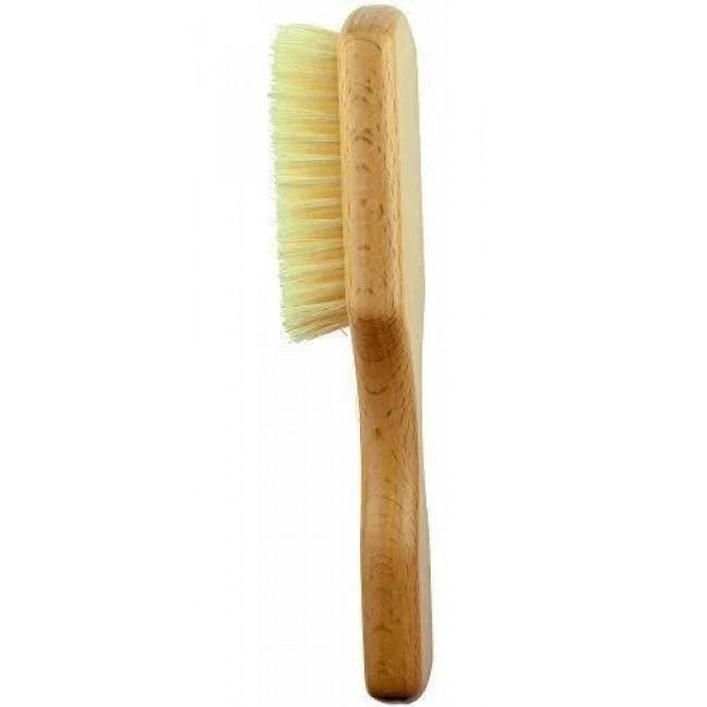 Прямоугольная булавовидная щётка OG изготовлена из букового дерева и наполнена тончайшей чистой белой натуральной щетиной. Создана для улучшения состояния каждой пряди, от корня до кончика; стимулирует кожу головы для ускоренного роста, распределяет масла в волосах для природного питания и блеска. Идеально подходит для средних и густых волос и бороды.