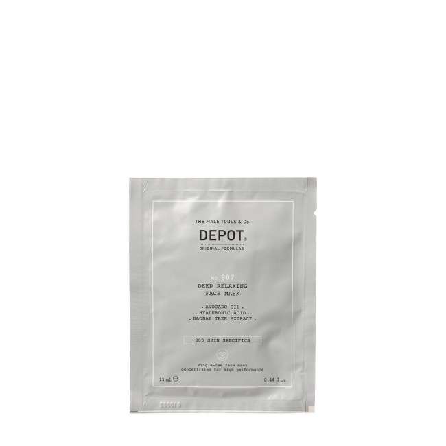 Описание Успокаивающая маска для лица и шеи Depot 807 DEEP RELAXING FACE MASK (12 саше по 13 мл)