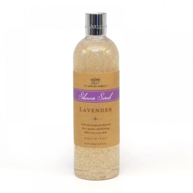 Ароматный гель для душа Saponificio Varesino Shower Scrub Lavender в формате 500 мл с микронизированной миндальной скорлупой для деликатного отшелушивающего эффекта.