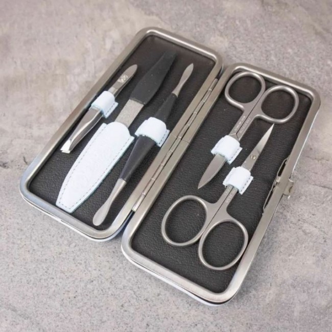 Маникюрный набор из нержавеющей стали, сатинированный. В комплекте есть все необходимые инструменты для ухода за руками.
