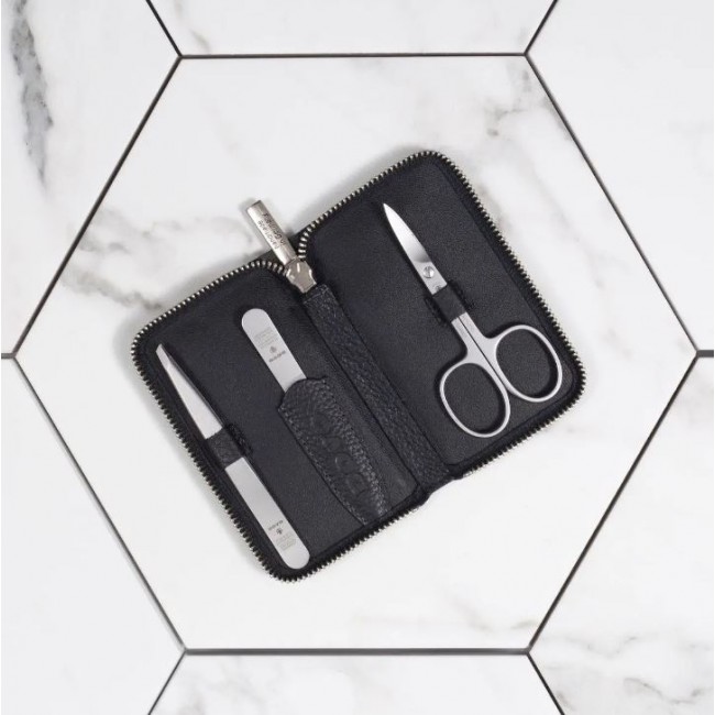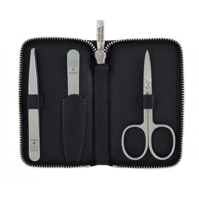 Набор для ухода за ногтями DOVO № 3 содержит три главных инструмента. Придайте своим ногтям идеальный вид с помощью ножниц и пилочки DOVO. Удалите лишние волоски с помощью пынцета. Инструменты бережно хранятся высококачественном футляре из воловьей кожи. Ергономичный размер 11х6,5х1,3 см